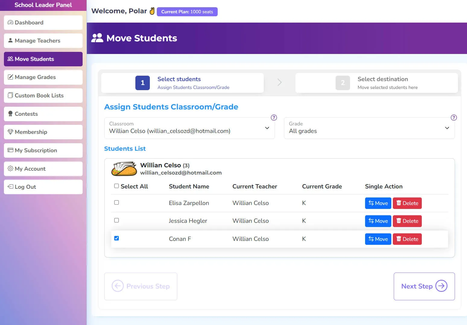 Super users can access and view the students assigned to teachers, and have the capability to move students between teachers, effectively reassigning students to different classrooms or grades.
